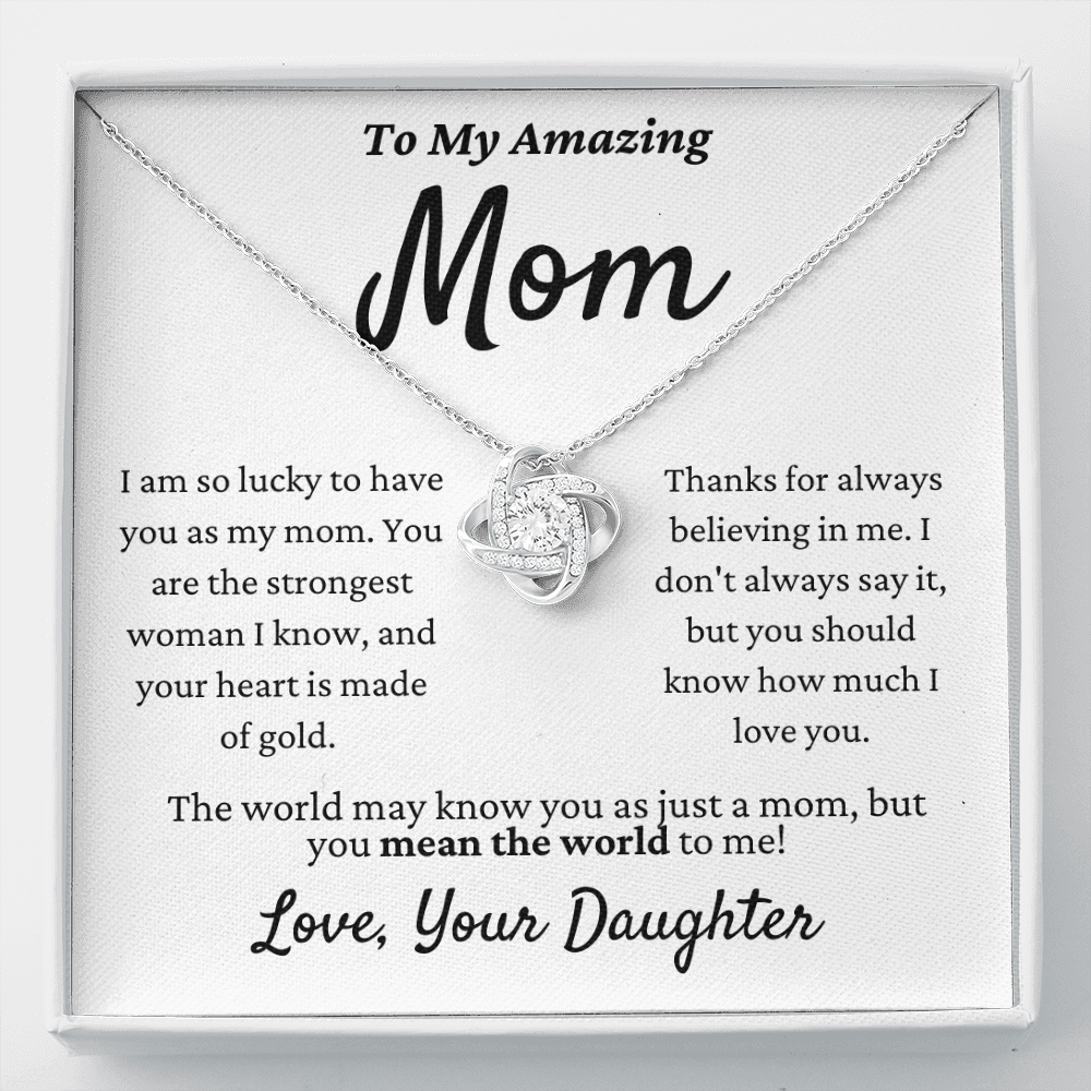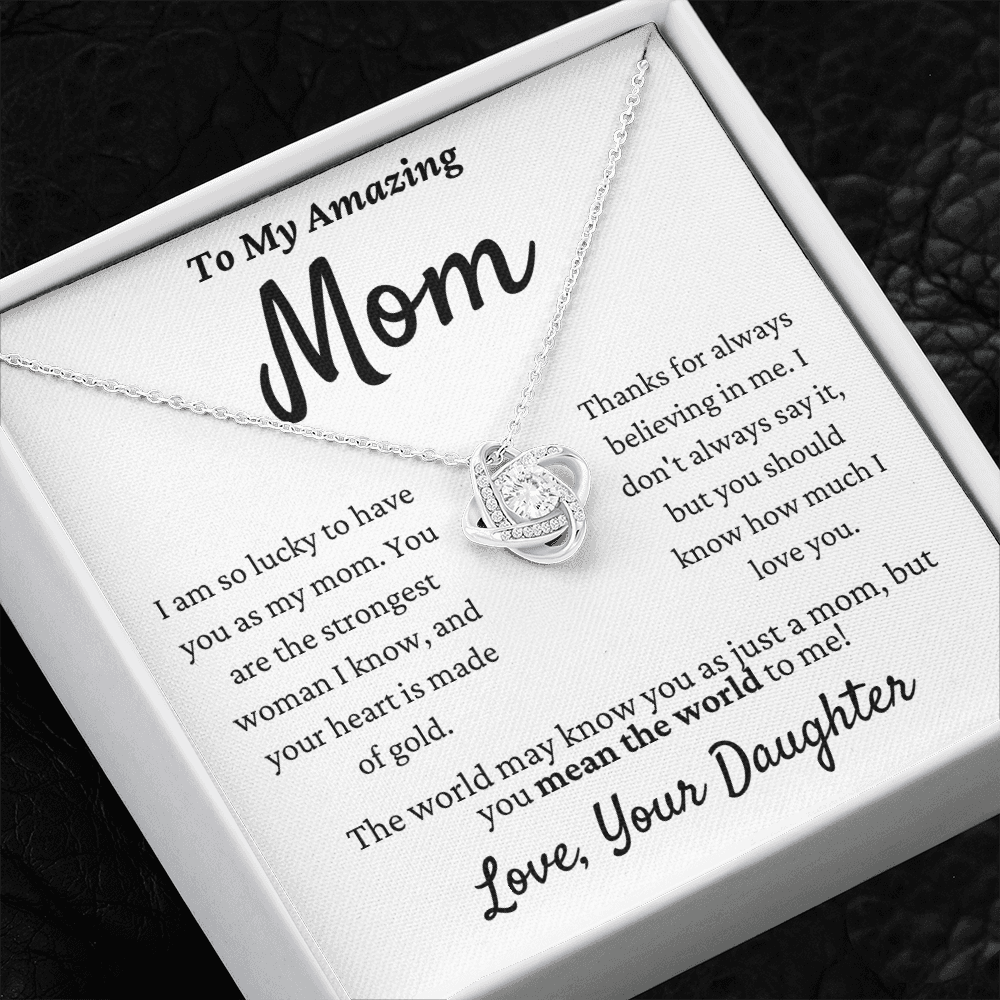 Amazing Mom, you mean the world to me - Love Knot Necklace, wht, v2, hgs000.9