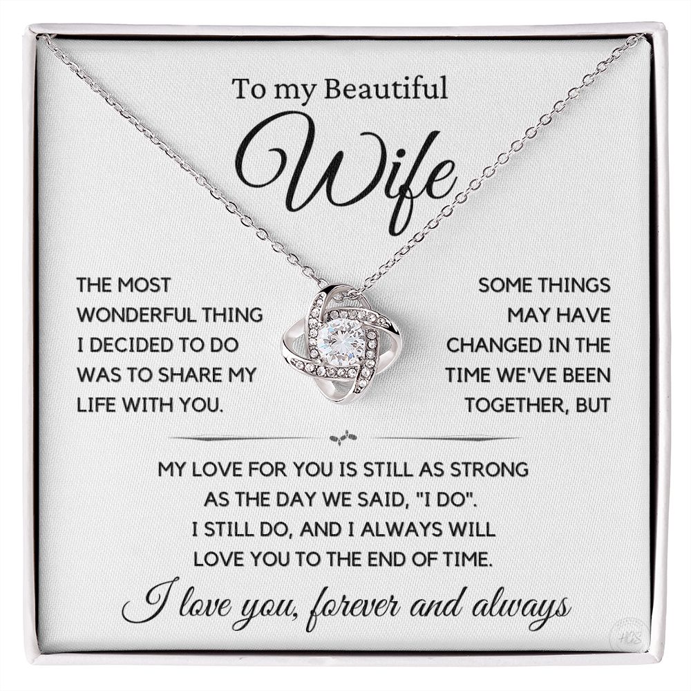 Imagine her reaction receiving this beautiful Love Knot Necklace. Representing an unbreakable bond between two souls, this piece features a beautiful pendant embellished with premium cubic zirconia crystals. Surprise your loved one with this gorgeous gift today!