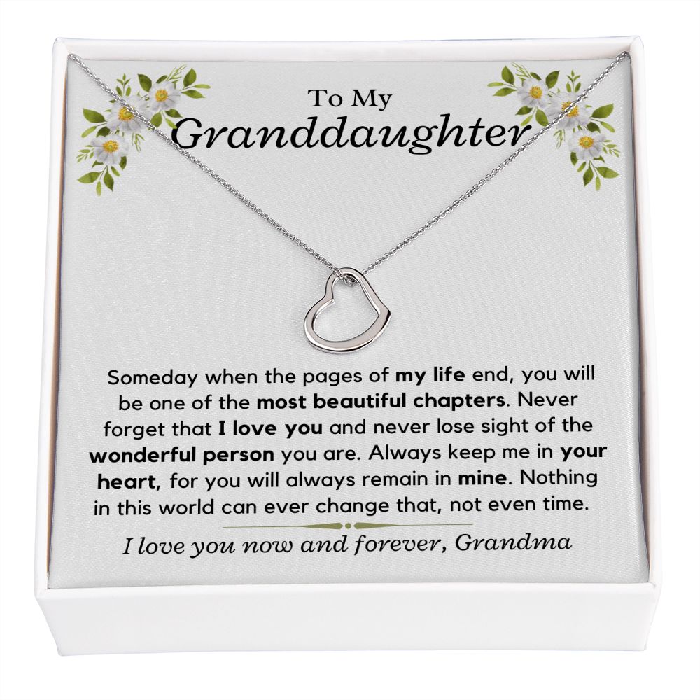 Granddaughter, someday when the pages of my life - Delicate Heart White Gold Necklace, hgs028.6