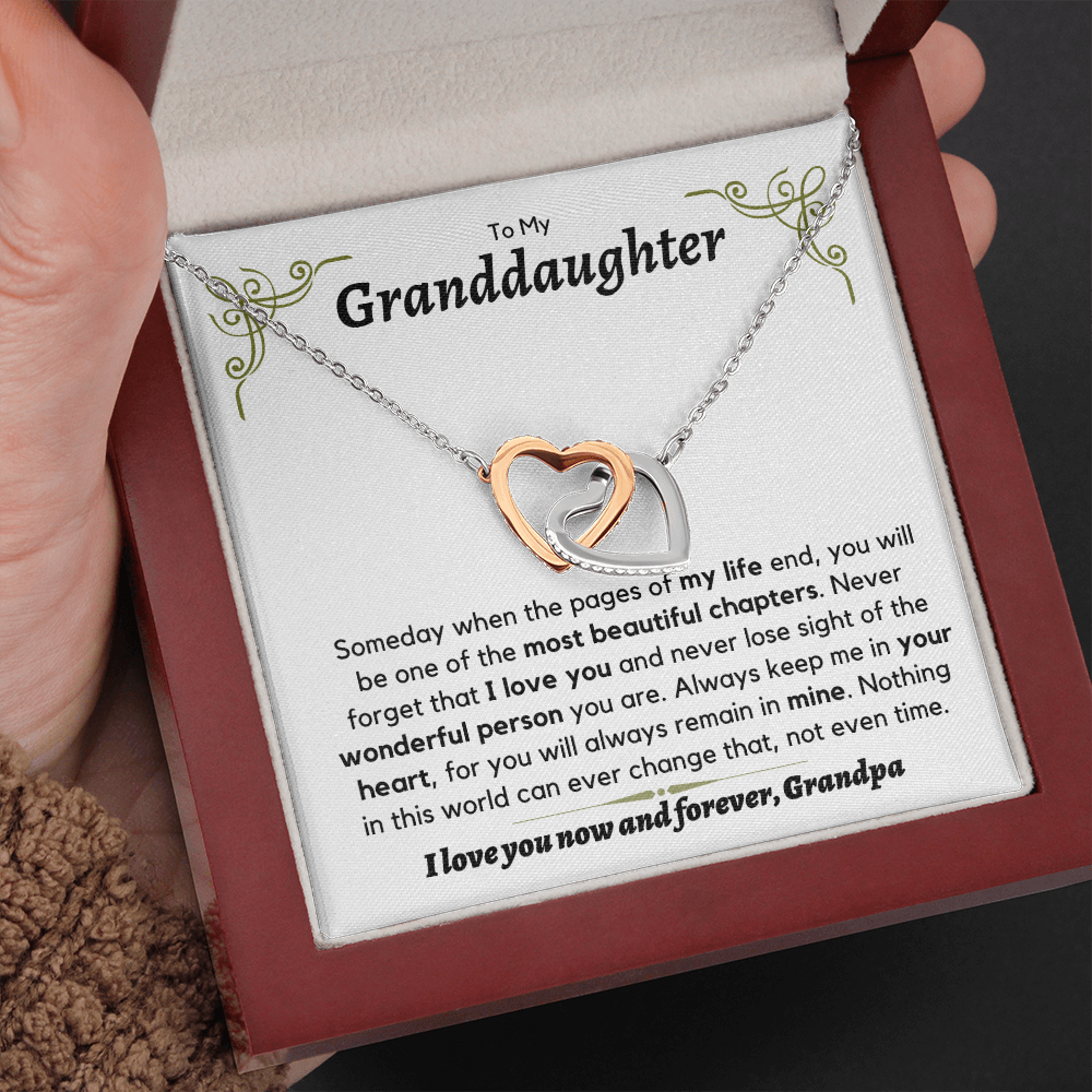 Granddaughter, from Grandpa, someday when the pages of my life - Interlocking Hearts Necklace, hgs028.5