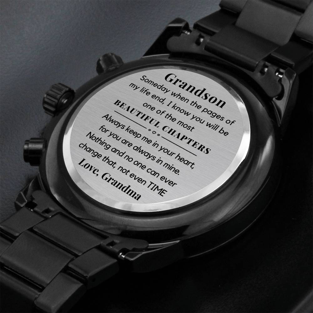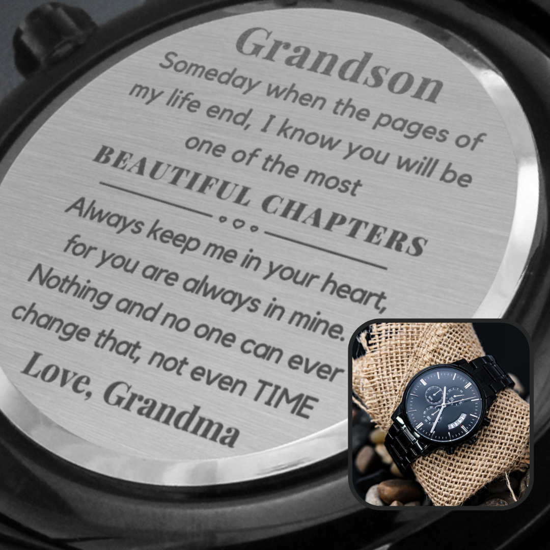 Grandson Gift from Grandma, Engraved Metal Watch, Present for Birthday, Graduation, Moving Away