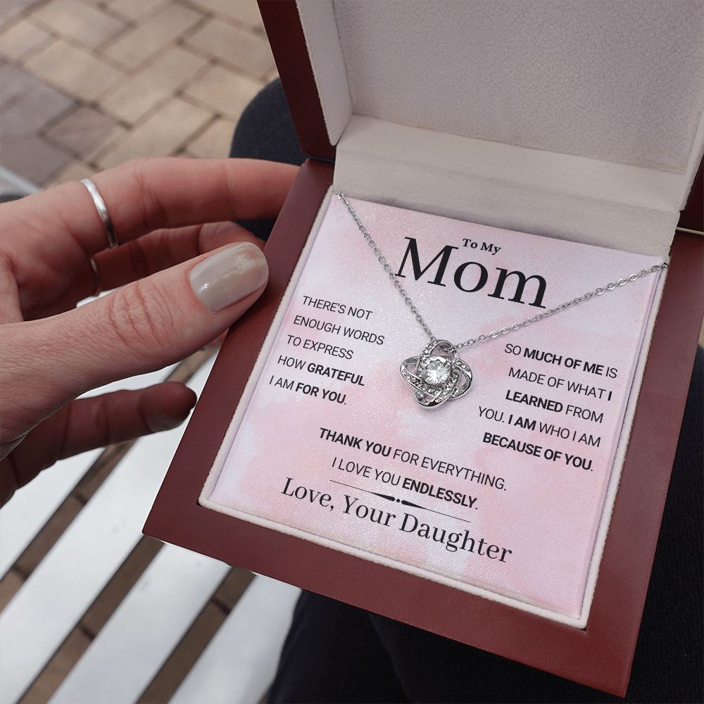 This beautiful Love Knot necklace is created specially to celebrate your Mom and all your special moments together. 💕
