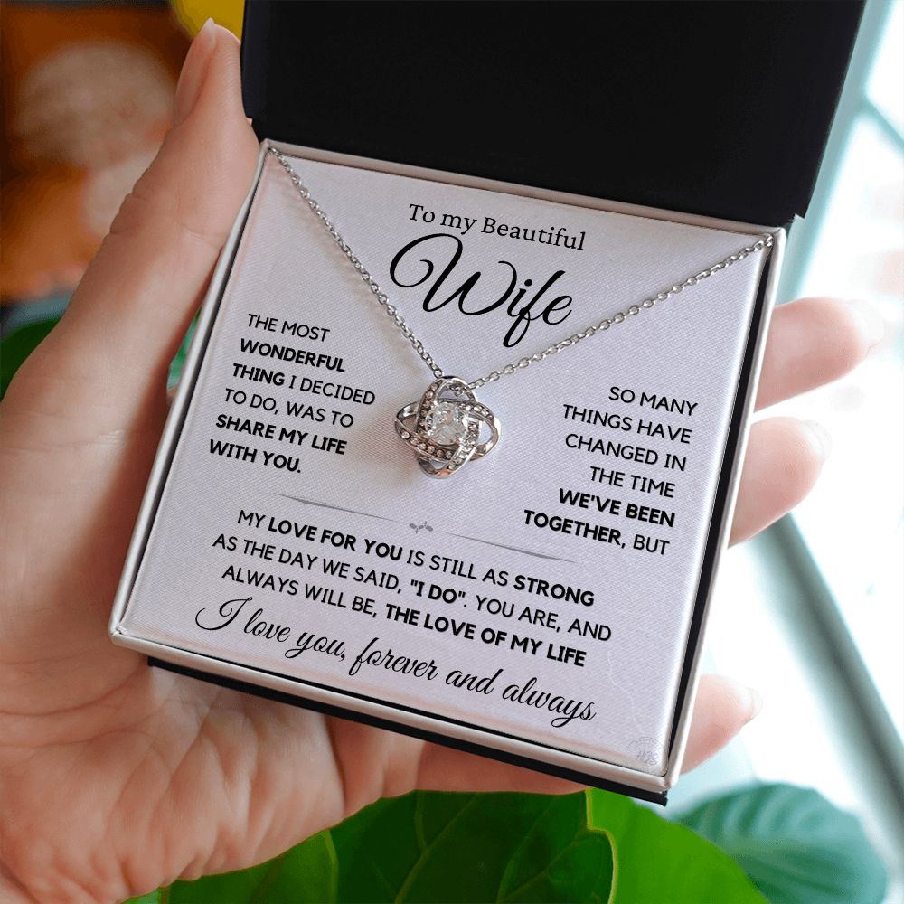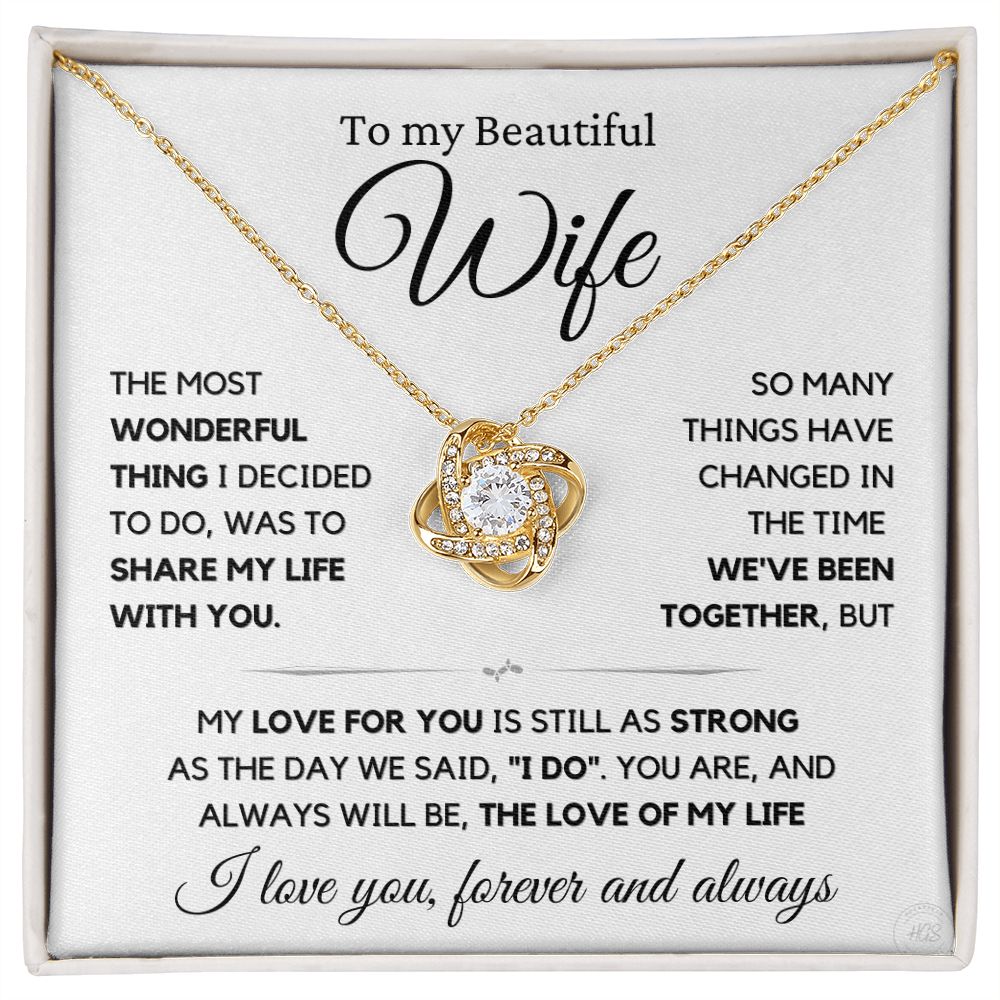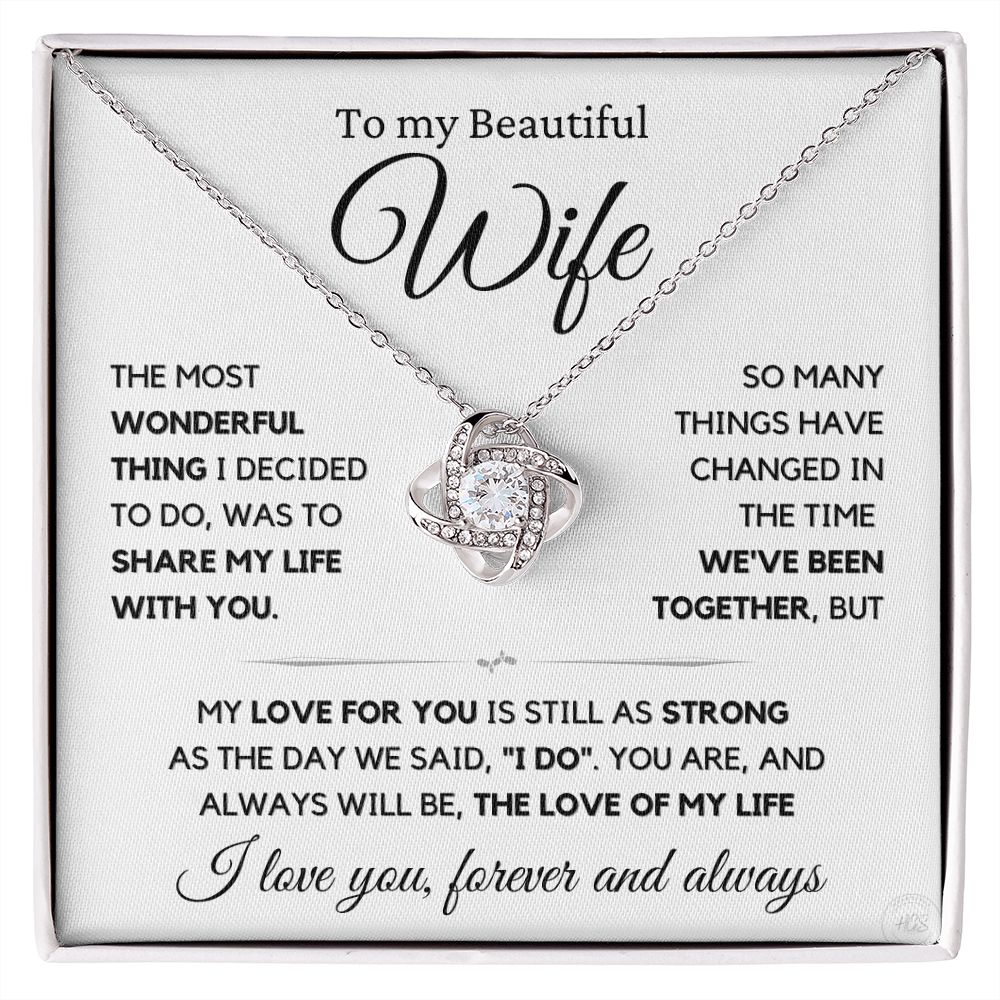 - To My Beautiful Wife, the most wonderful thing I decided to do, was to share my life with you. So many things have changed in the time we've been together, but my love for you is still as strong as the day we said, "I do". You are, and always will be, the love of my life. I love you, forever and always.
