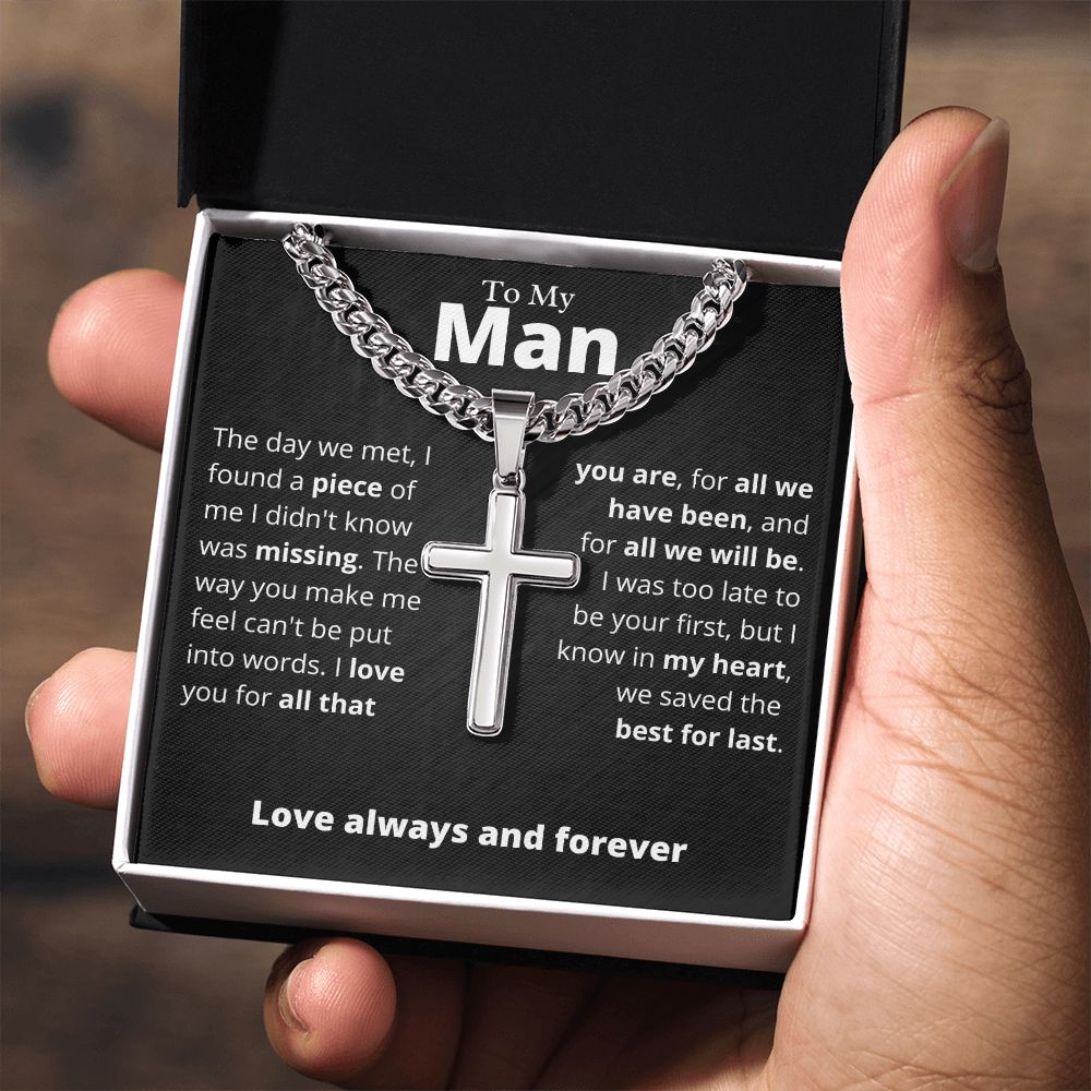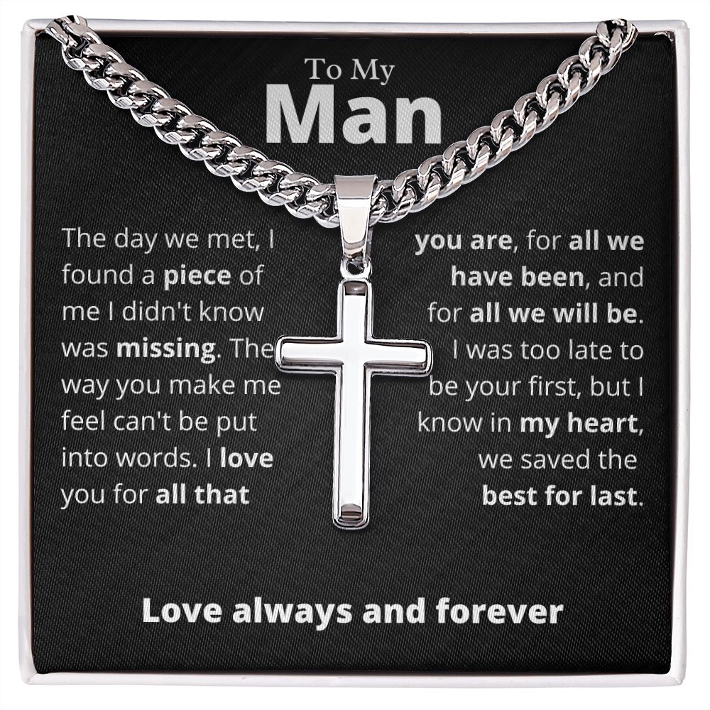 My Man, Best for Last - Cuban Chain with Artisan Cross Necklace, blk