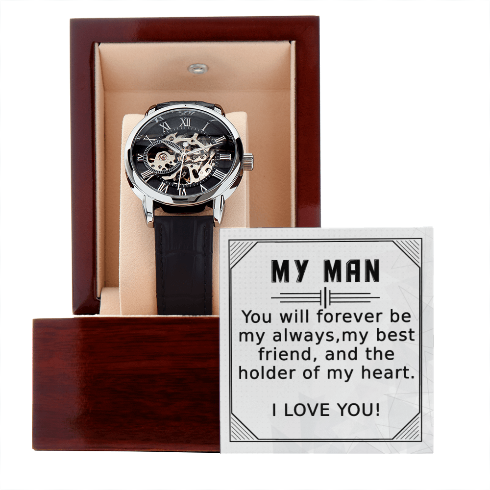 My Man, you will Forever be My Always - Men's Openwork Watch | Boyfriend Gift Birthday | Anniversary Gift Husband | Father's Day Gift from Wife | Unique Gift for Him | Wedding Gift | Watch Box for Him | Engagement Gift for Man | Classic Watch, hgs013