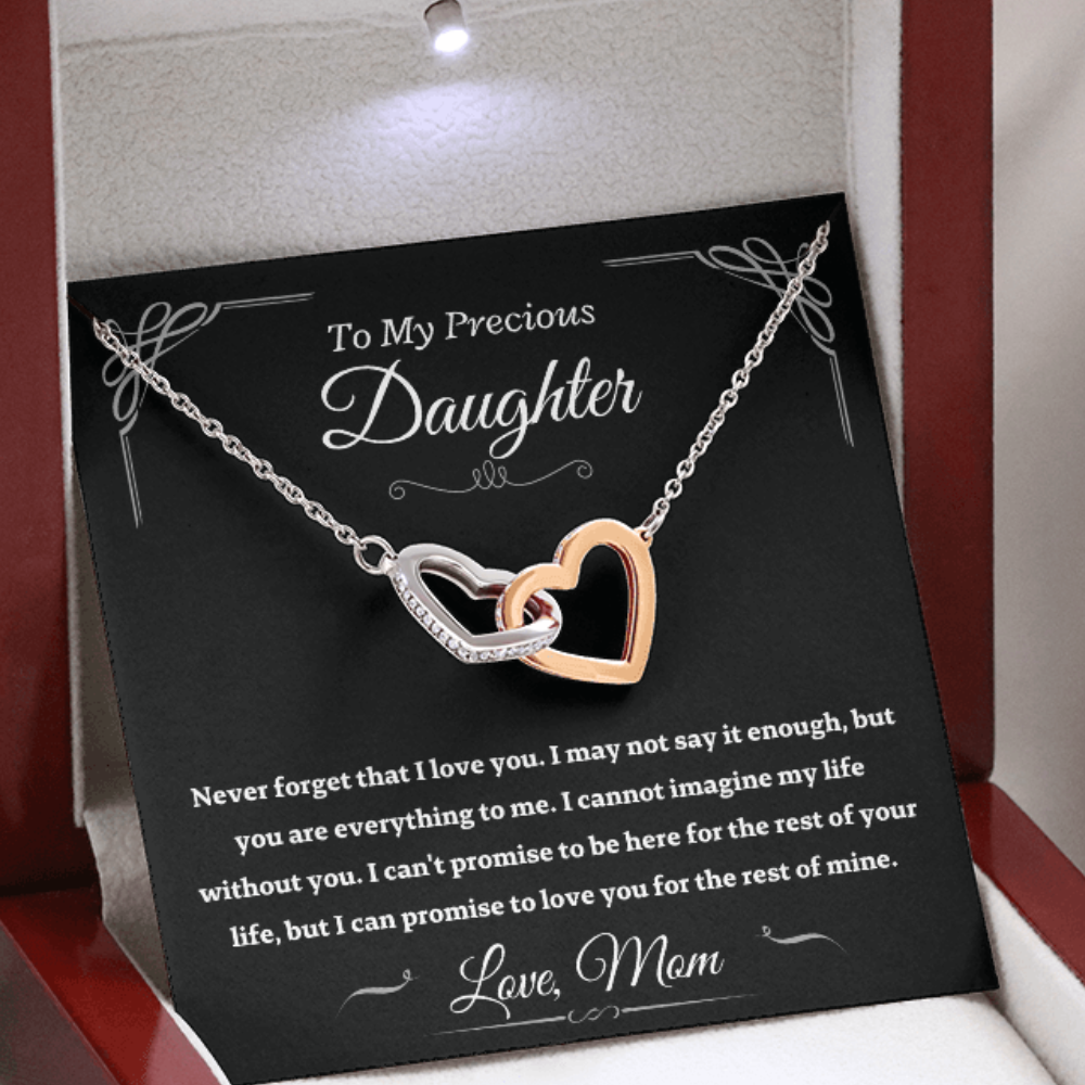 Precious Daughter from Mom, never forget - Interlocking Hearts Necklace, hgs024.1