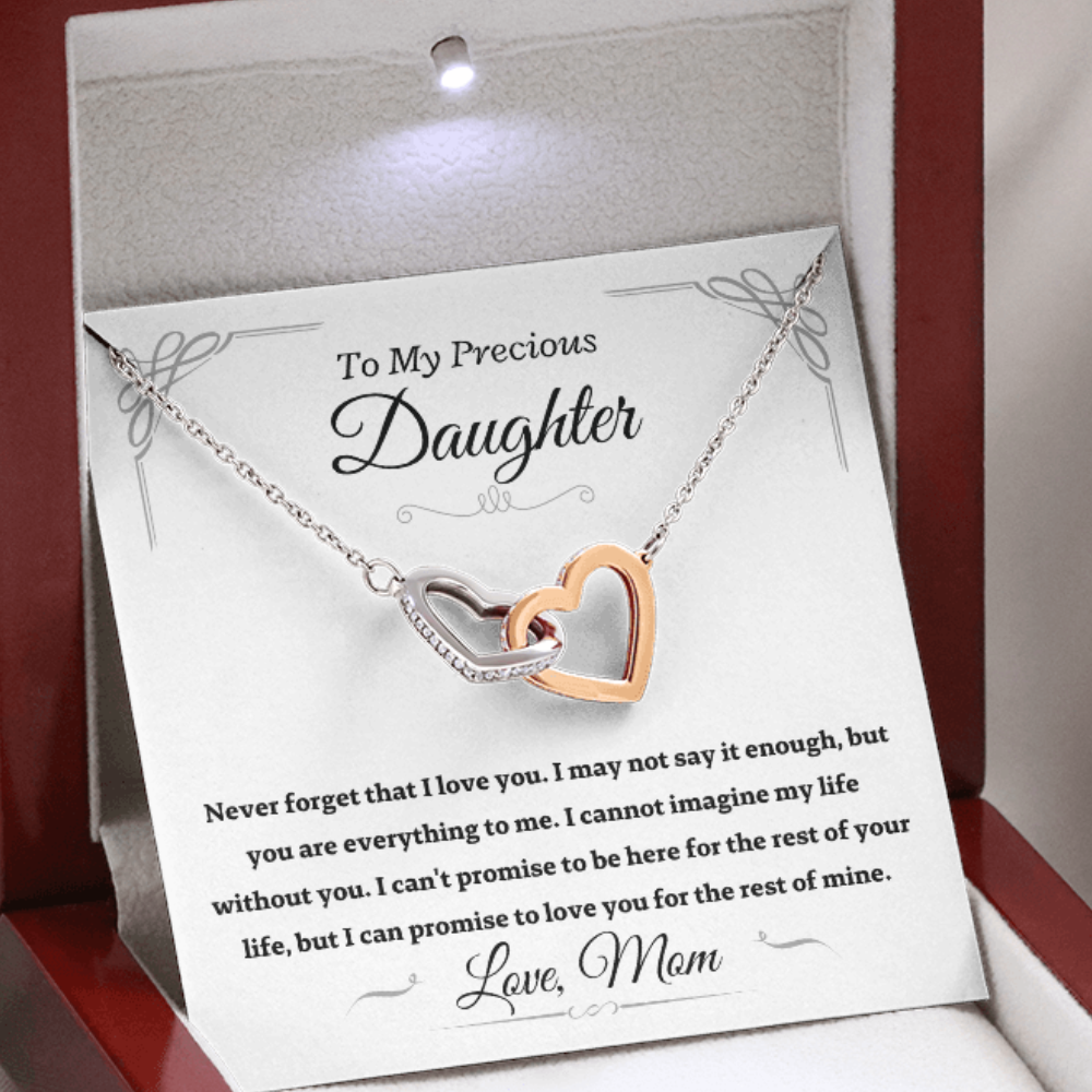 Precious Daughter from Mom, Never forget - Interlocking Hearts Necklace, Gift for Daughter, hgs024