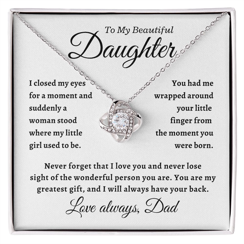 Imagine her reaction receiving this beautiful Love Knot Necklace. Representing an unbreakable bond between two souls, this piece features a beautiful pendant embellished with premium cubic zirconia crystals. Surprise your loved one with this gorgeous gift today!