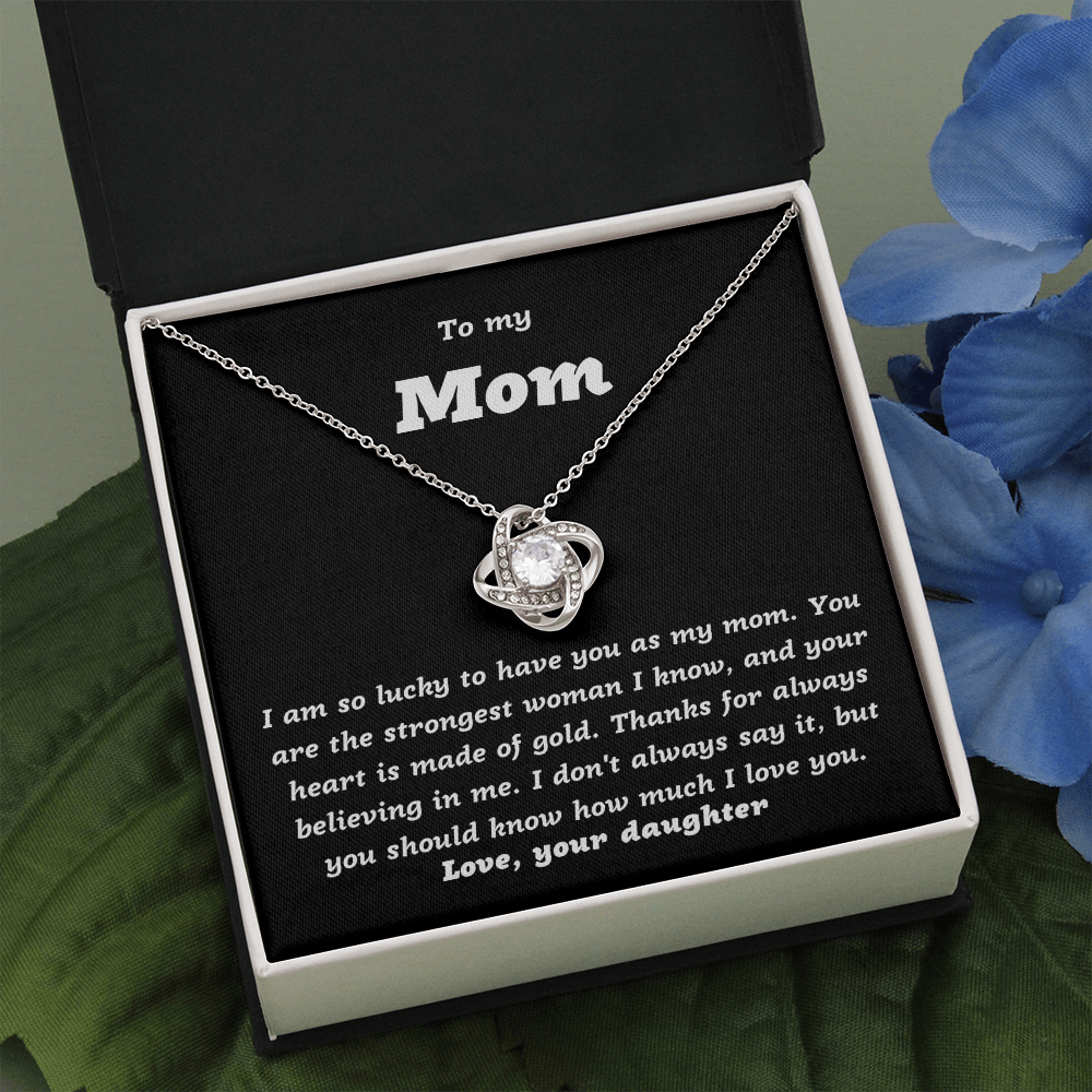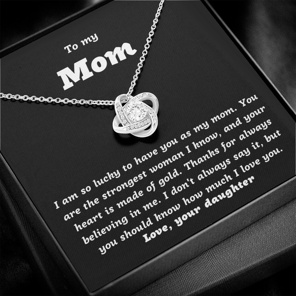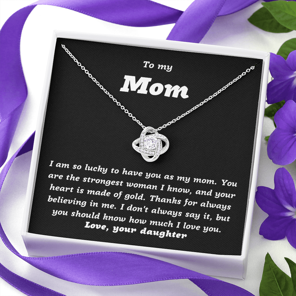 To my Mom from Daughter, I'm lucky to have you as my Mom - Love Knot Necklace, blk